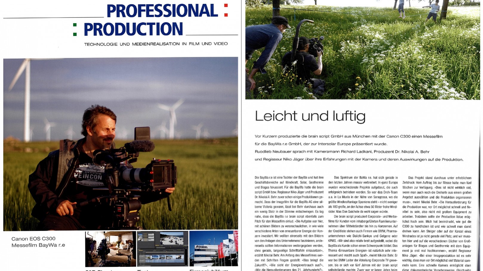 Bericht über brain script Produktion in Fachmagazin „Professional Production“ brain script gewinnt silbernen Delphin